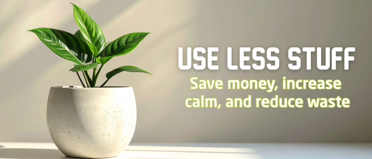 Using less “stuff” doesn’t require a dramatic lifestyle change. It simply means making choices that support your wellbeing: choosing what you need, appreciating what you already have, and spending in a way that keeps you on track.