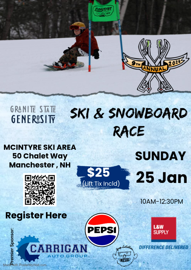 This January, Granite State Generosity is hosting one of its signature community events: the Bob Gilman Fun Run Ski & Snowboard Race on January 25 at McIntyre Ski Area in Manchester.